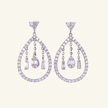 Baguettes and rectangle illusion set is suspended inside the pear earrings, covered with round diamonds. Lillian Pear Diamond Earrings are designed to shine even in the starry nights.