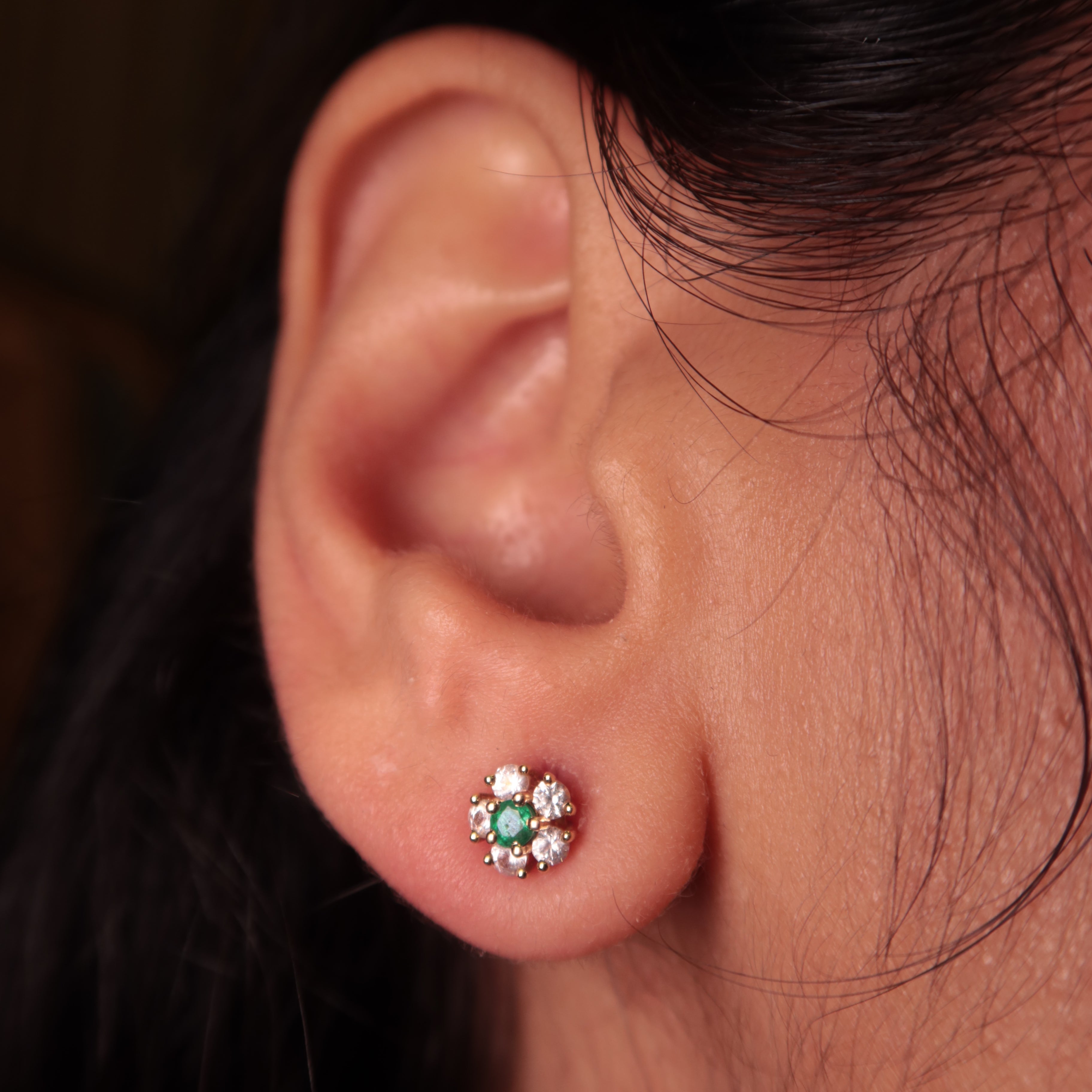 The Blossom White Sapphire Studs feature a radiant white sapphire center, surrounded by a halo of delicate stones, creating a floral-inspired glow. Perfect for everyday sophistication or as a subtle statement piece.
