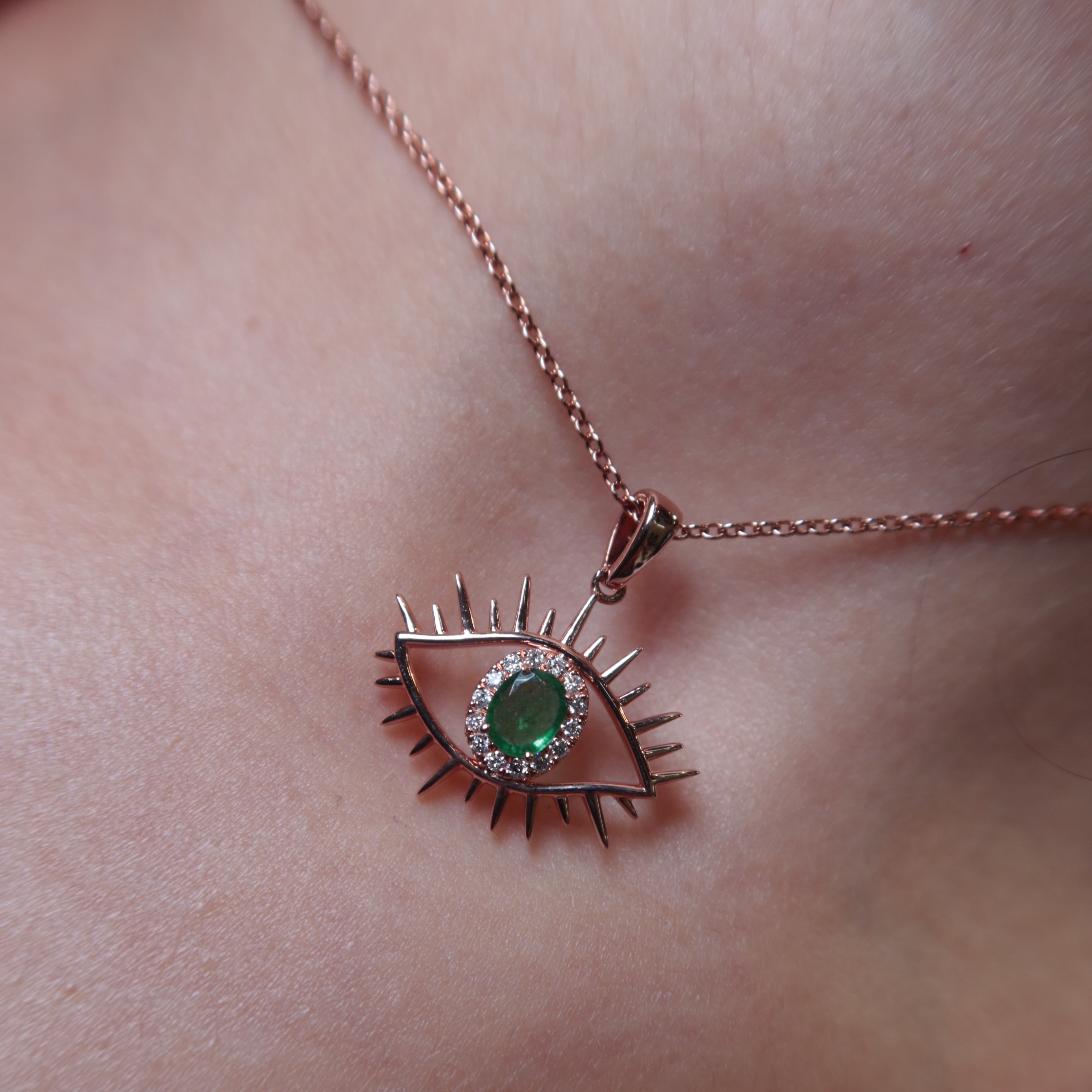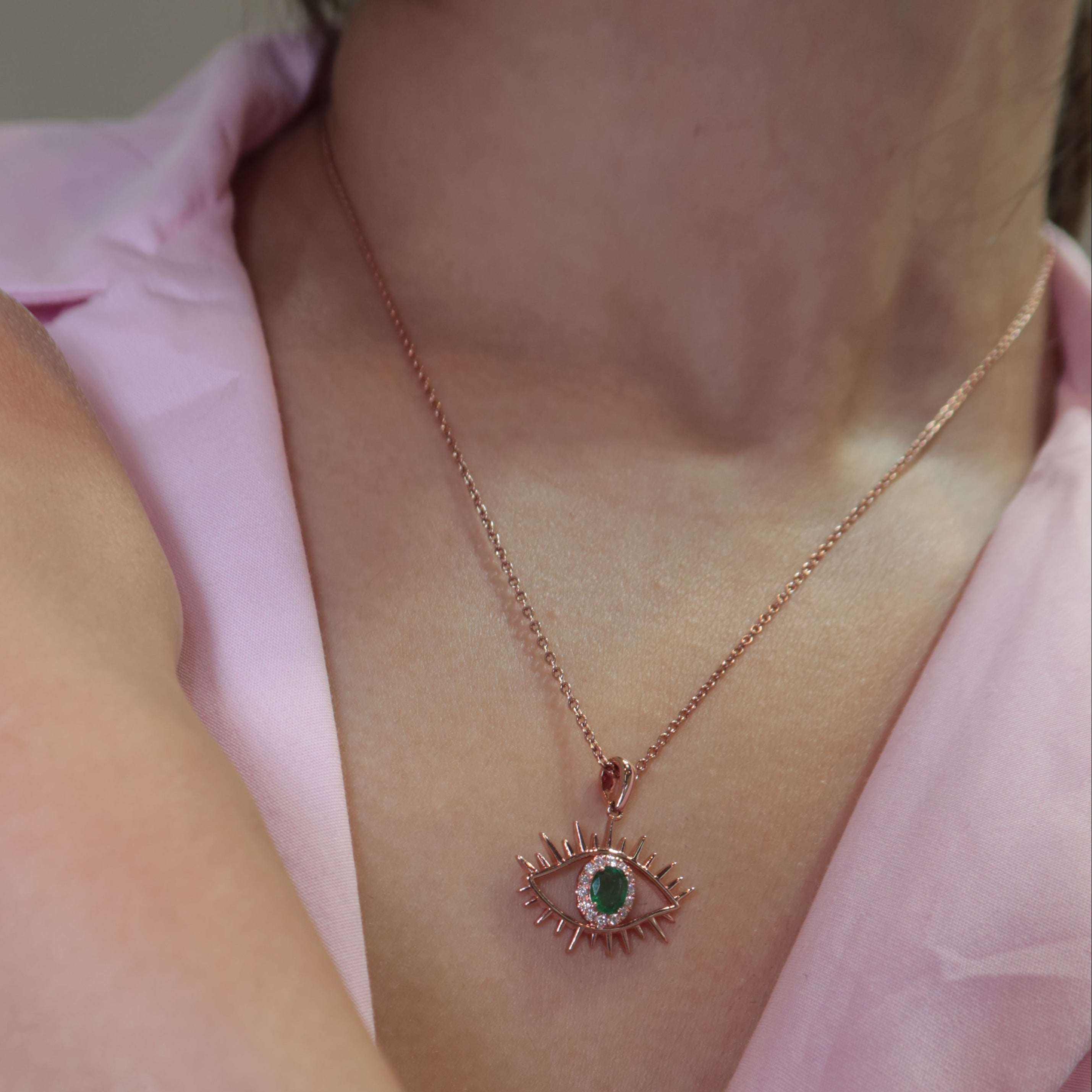 The luxurious yet indisputably modern, an evil eye necklace that you'll never want to take off. It is handcrafted with special care and designed with a gorgeous glare. The deep emerald comes alive and spreads good luck and protection.