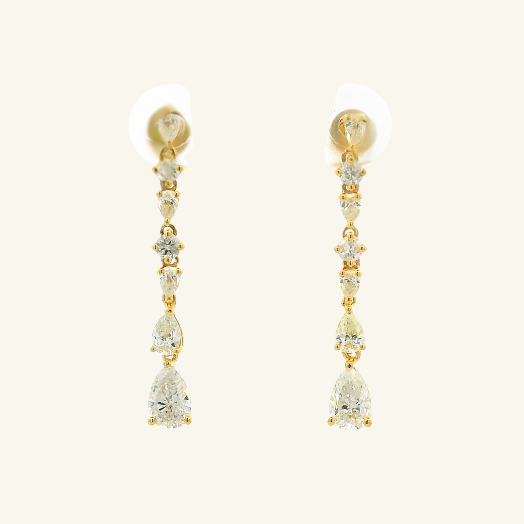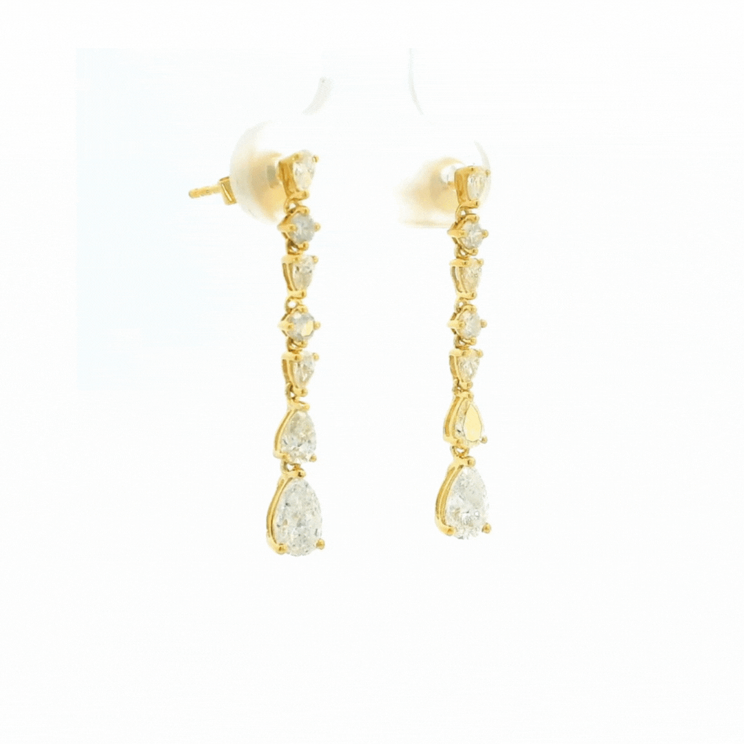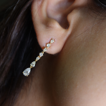 The Nina Diamond Earrings feature alternating pear and round diamonds arranged in a rectilinear design, adding dimension and sparkle. Perfect for everyday wear or as a statement piece, they offer a modern, elegant touch.
