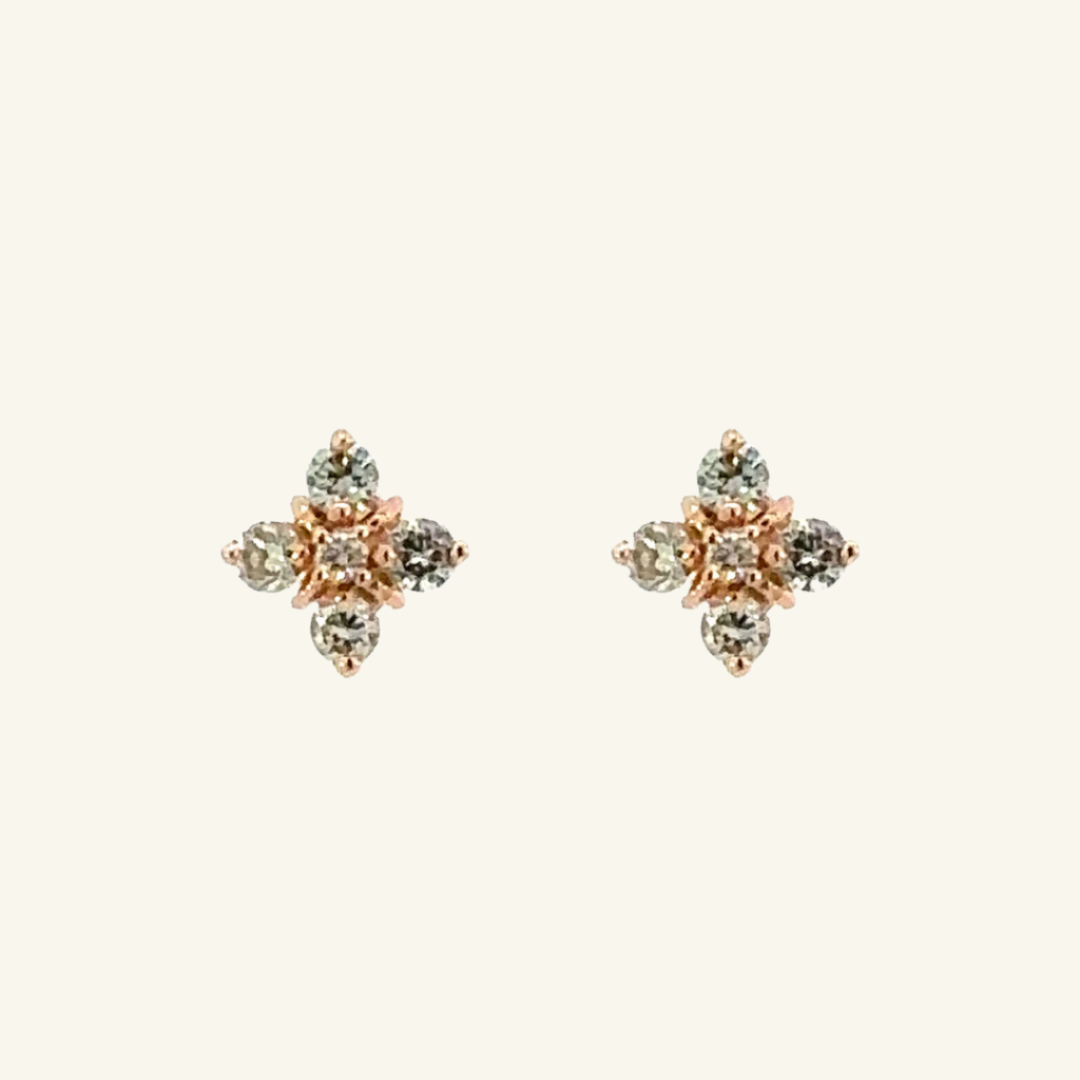 Five round diamonds set in rose gold form a delicate clover motif. A dainty yet dazzling choice for any occasion.
