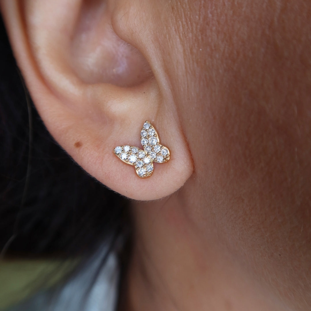 The Butterfly Diamond Earrings are designed to shimmer with movement, capturing light from every angle. Perfect for elevating everyday looks or adding a touch of elegance to special occasions, their delicate butterfly design brings a playful yet sophisticated charm.