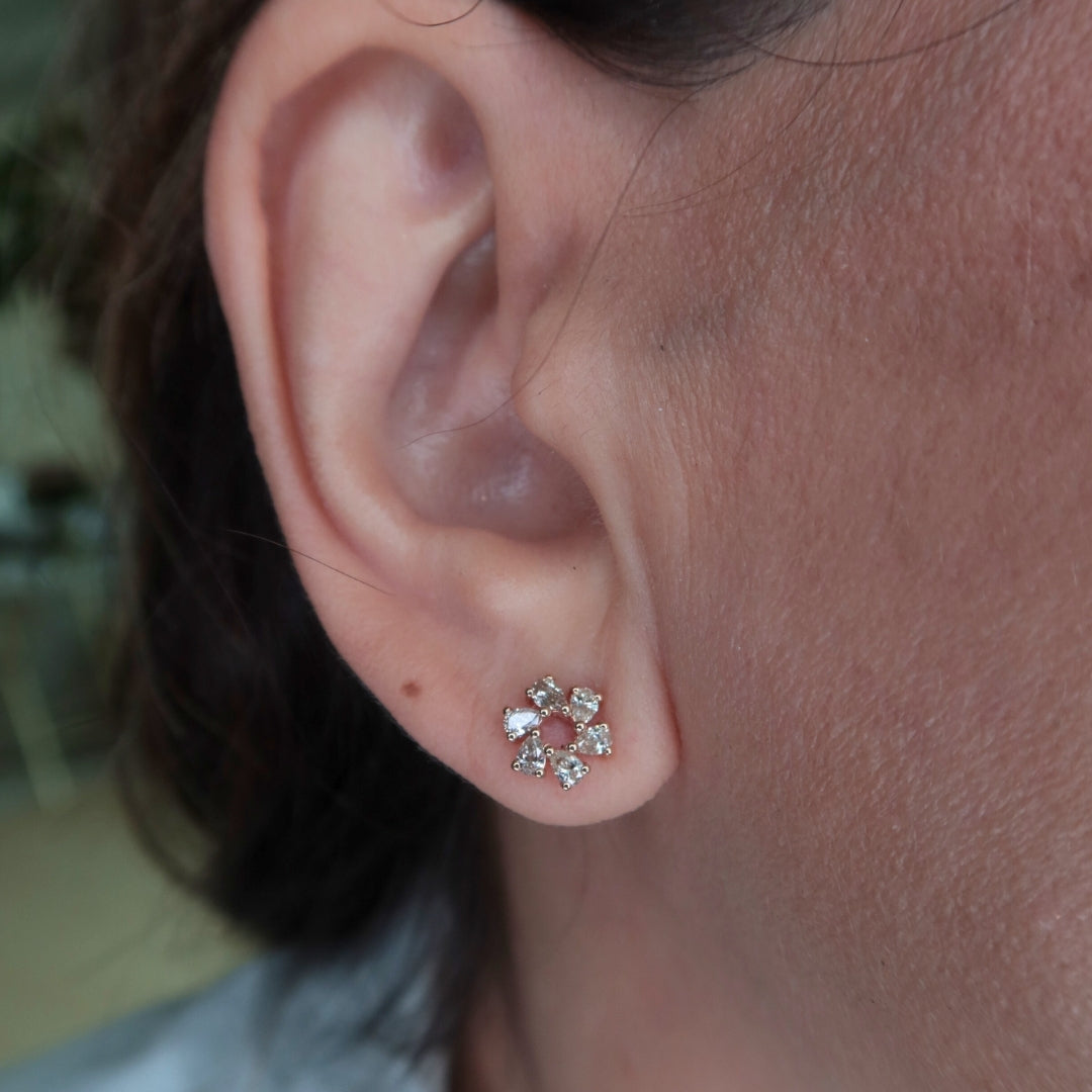 These stunning rose gold beauties feature sparkling pear-shaped diamonds that catch the light beautifully, these chic earrings work for everyday wear or stacked across multiple piercings.