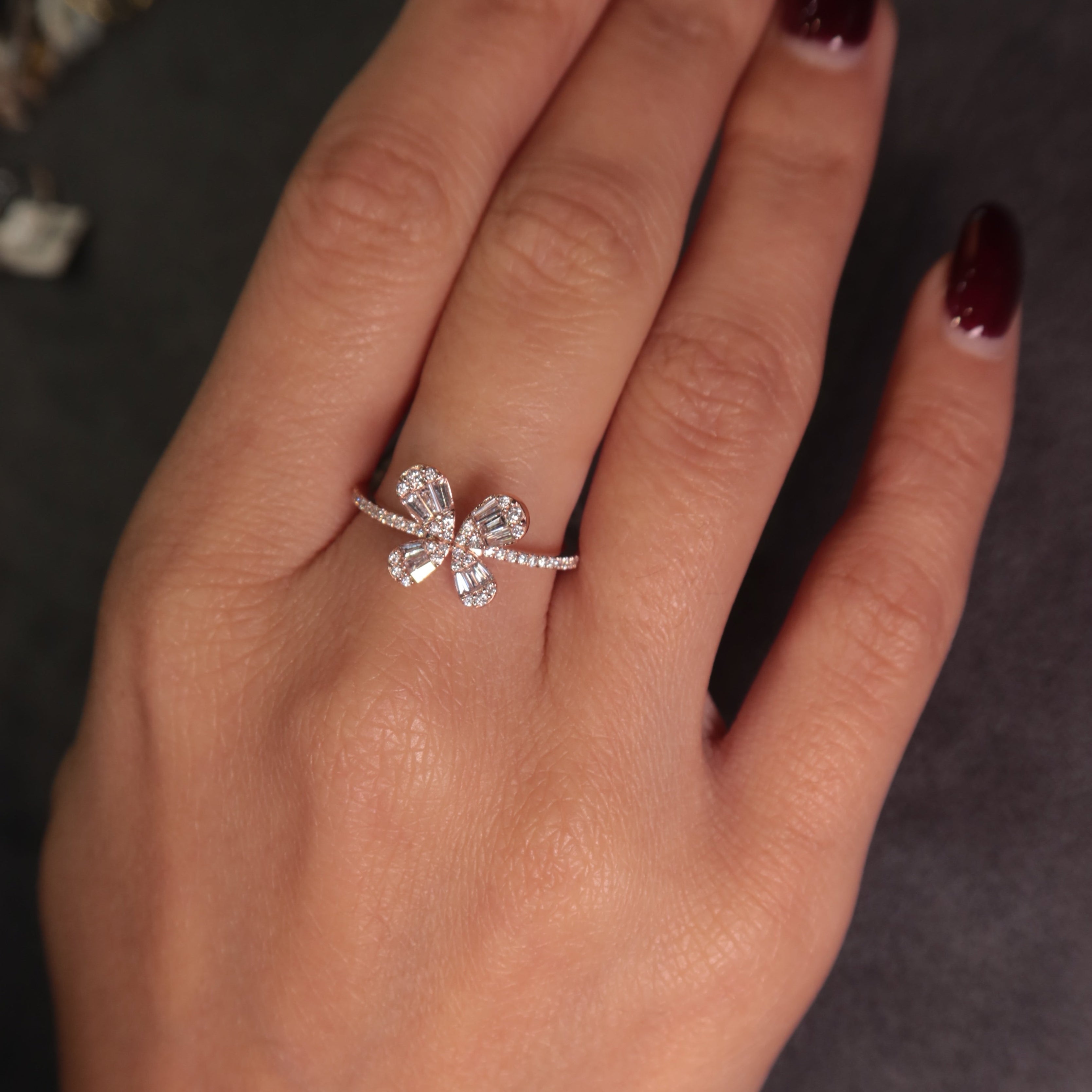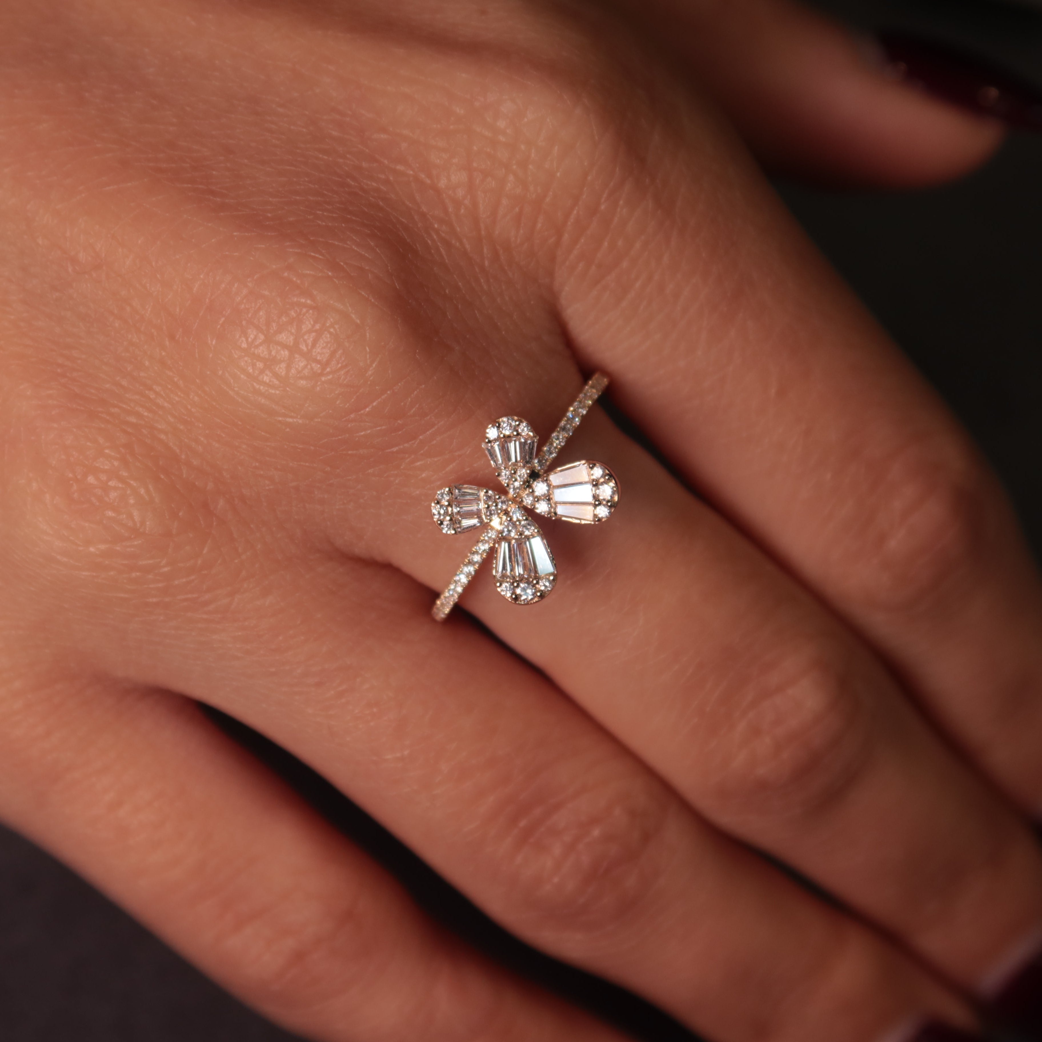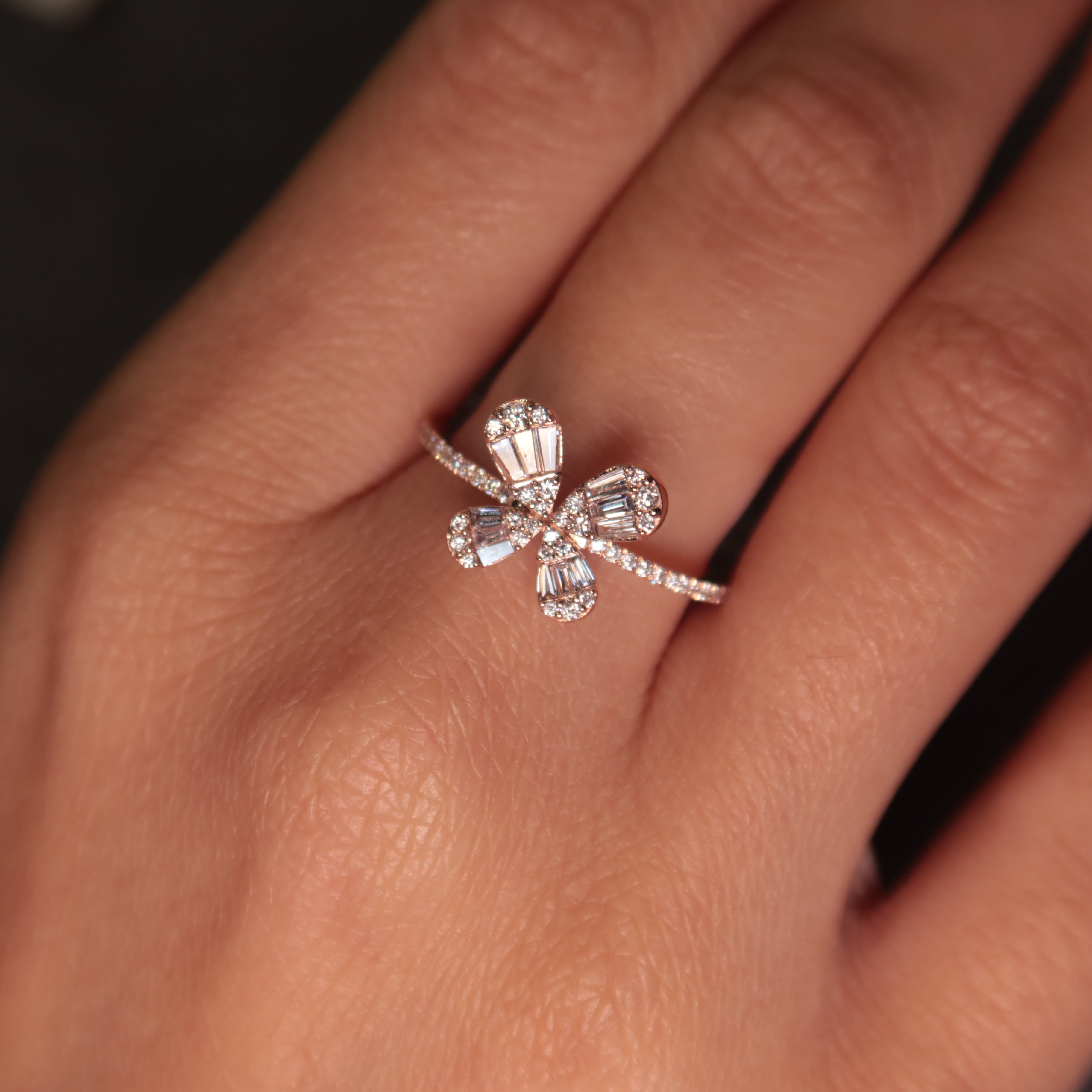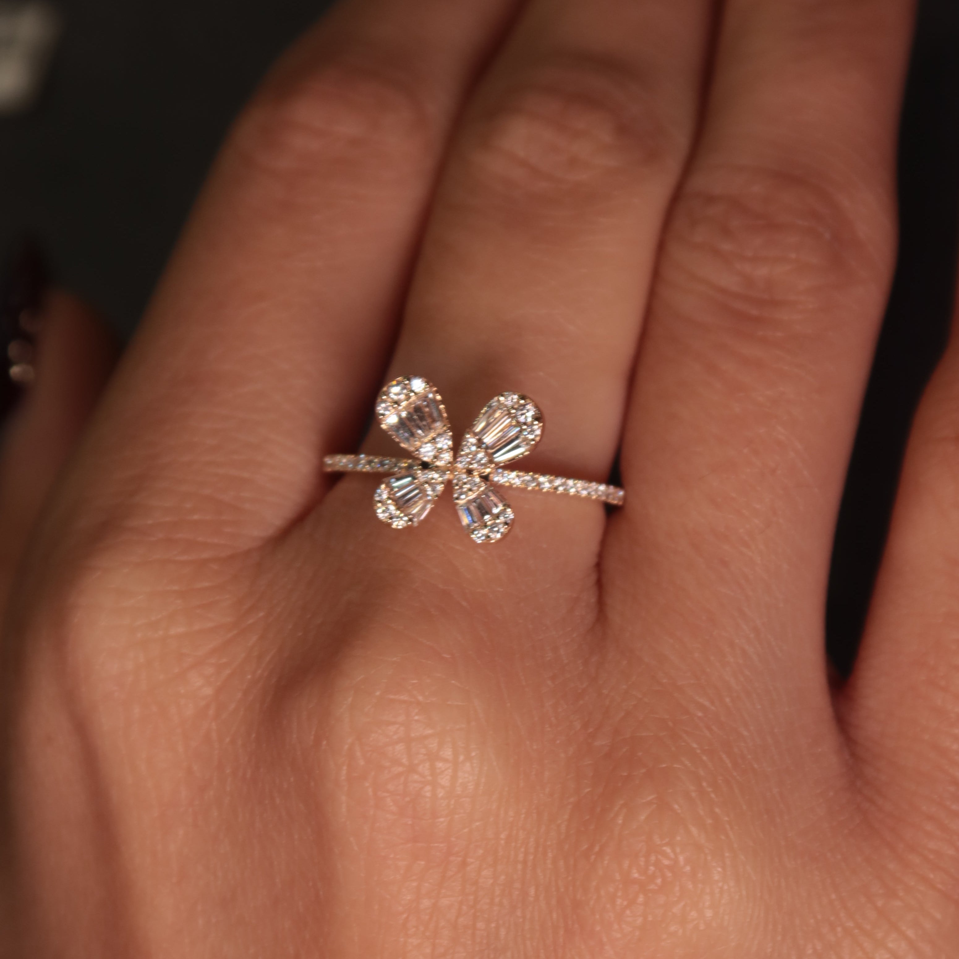 A butterfly silhouette in 18K gold and natural diamonds. Ancient symbolism, worn now. It catches the eye without explaining itself. This ring can also be layered with your Oura/Ultra Human ring.