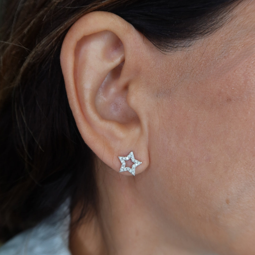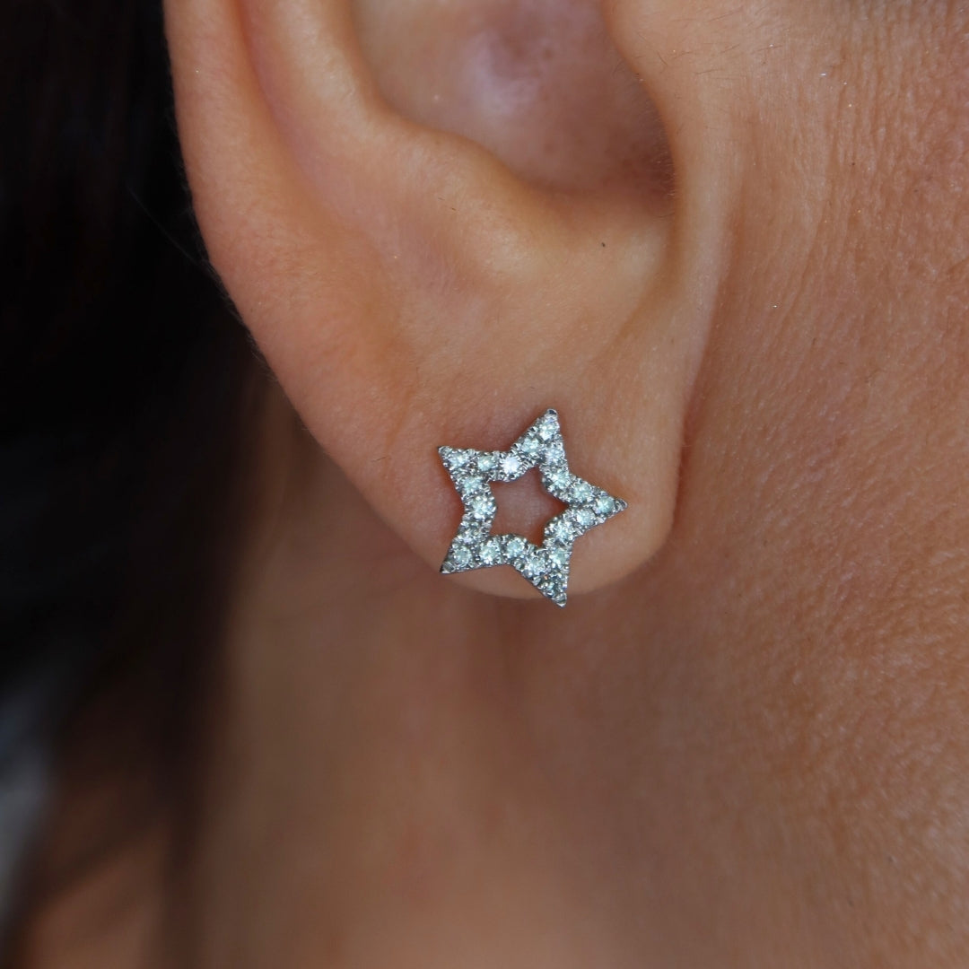A celestial-inspired pair of studs, featuring round diamonds set in a star motif. A delicate touch of sparkle for everyday wear.